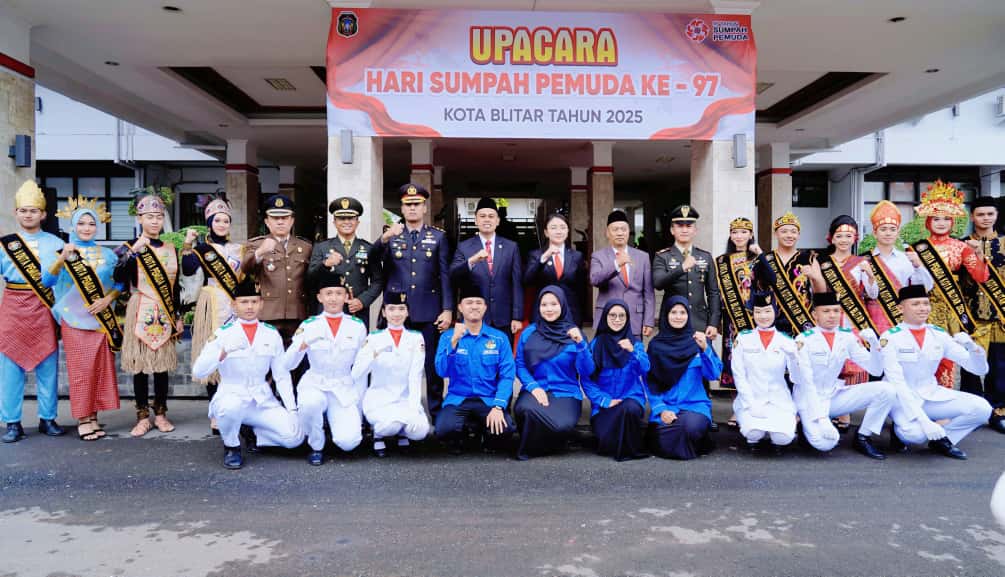 Lensakrimin@–Blitar – Komandan Kodim 0808/Blitar Letkol Inf Virlani Arudyawan menghadiri upacara peringatan Hari Sumpah Pemuda ke-97 Tahun 2025 yang digelar di halaman Kantor Walikota Blitar Jalan Merdeka Kota Blitar, Selasa (28/10/2025).