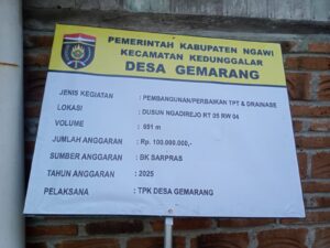 Sunarni, Kepala Desa Gemarang saat ditemui awak media mengatakan, “pemanfaatan Dana BK Sarpras tahun 2025 kita alokasikan untuk pembangunan fisik, pemerintah desa fokuskan untuk pembangunan infrastruktur, salah satunya talud jalan. Agar cepat dirasakan manfaatnya oleh masyarakat, pengerjaannya kita kebut biar cepat selesai tepat waktu”. Jelasnya.